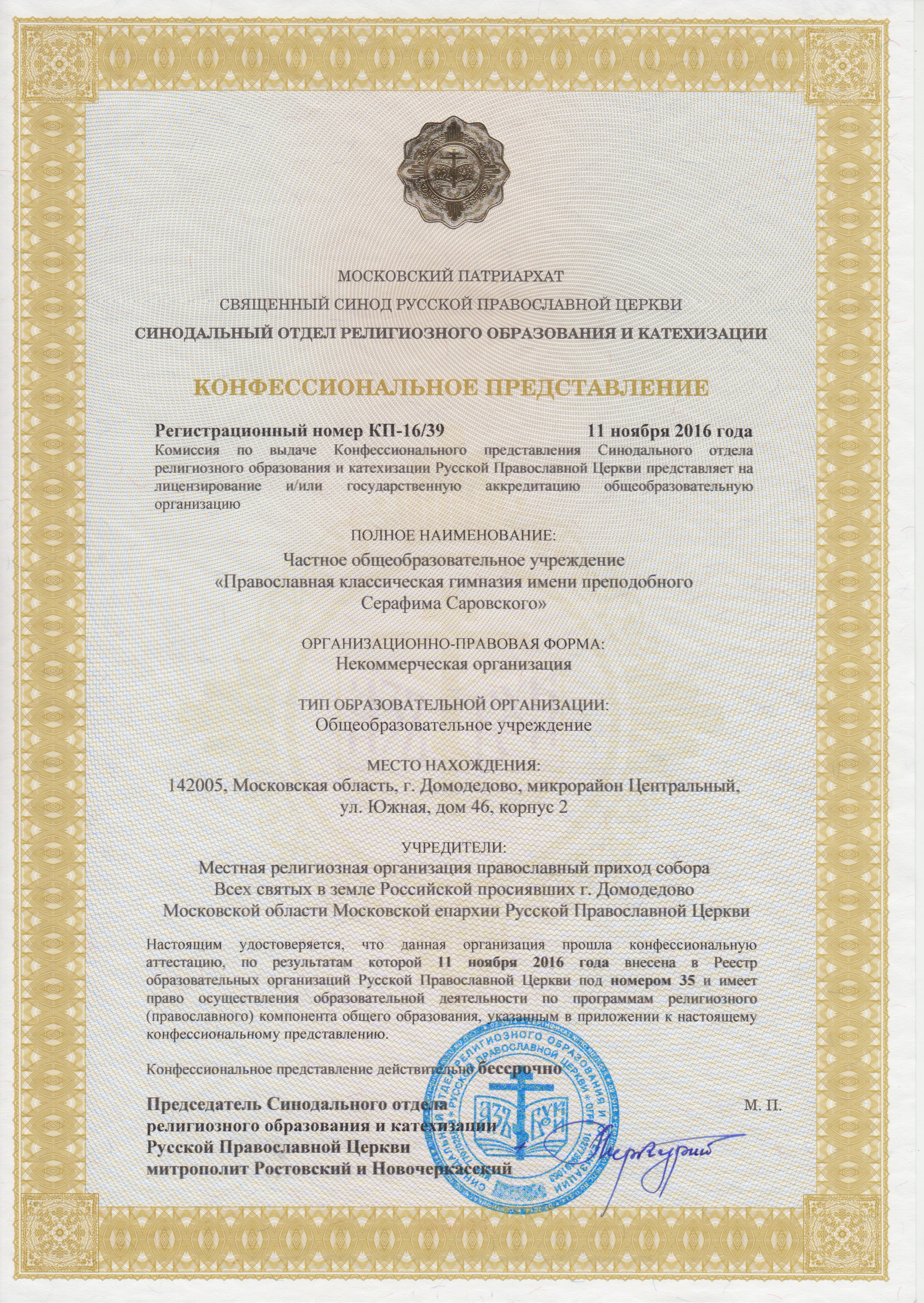 ЧОУ "ПРАВОСЛАВНАЯ КЛАССИЧЕСКАЯ ГИМНАЗИЯ ИМ. ПРЕП. СЕРАФИМА САРОВСКОГО"